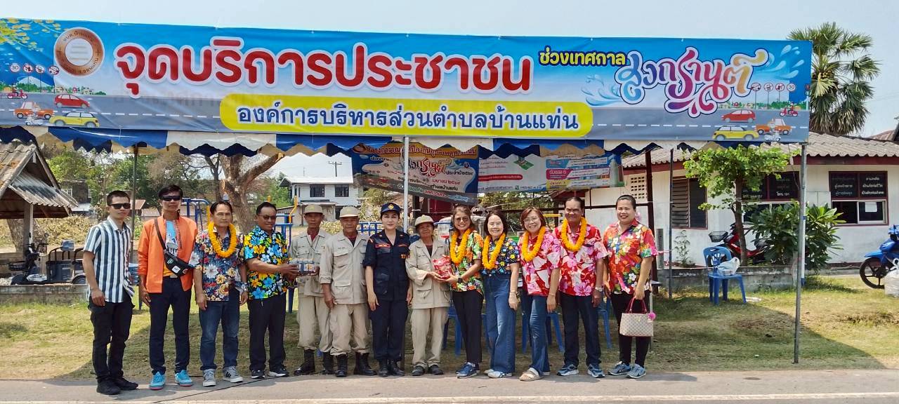 ระหว่างวันที่ 10-16 เมษายน 2569 นำโดย นางสาวรัตนกนก บัวพงษ์ชน นายกองค์การบริหารส่วนตำบลบ้านแท่น พร้อมด้วยคณะผู้บริหาร สมาชิกสภา หัวหน้าส่วนราชการ ป้องกันและบรรเทาสาธารณภัย ร่วมกับ ฝ่ายปกครองตำบลบ้านแท่น นำโดย นางลำดวน ชาน้อย ปลัดอำเภอชนบทประจำตำบลบ้านแท่น นายก้องกังวาลย์ ชินน้อย กำนันตำบลบ้านแท่น ผู้ใหญ่บ้าน ได้ออกตรวจเยี่ยมจุดบริการประชาชน ตามโครงการจัดตั้งศูนย์ปฏิบัติการร่วมป้องกันและ ลดอุบัติเหตุและเตรียมความพร้อม ด้านการป้องกันและบรรเทาสาธารณภัย และจุดบริการประชาชนในช่วงเทศกาลสงกรานต์ 2569 เพื่อลดการเกิดอุบัติเหตุทางถนนซึ่งนำมาถึงการสูญเสียชีวิตและทรัพย์สิน