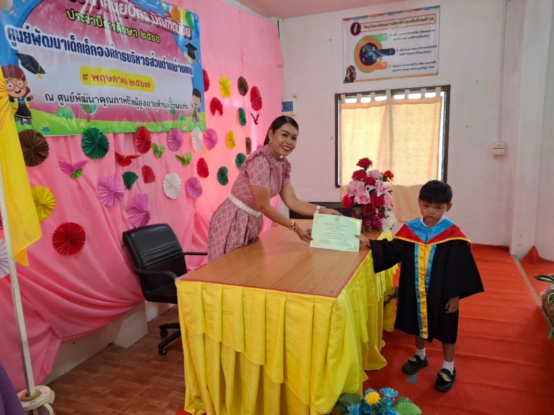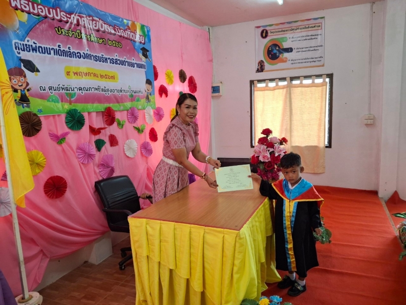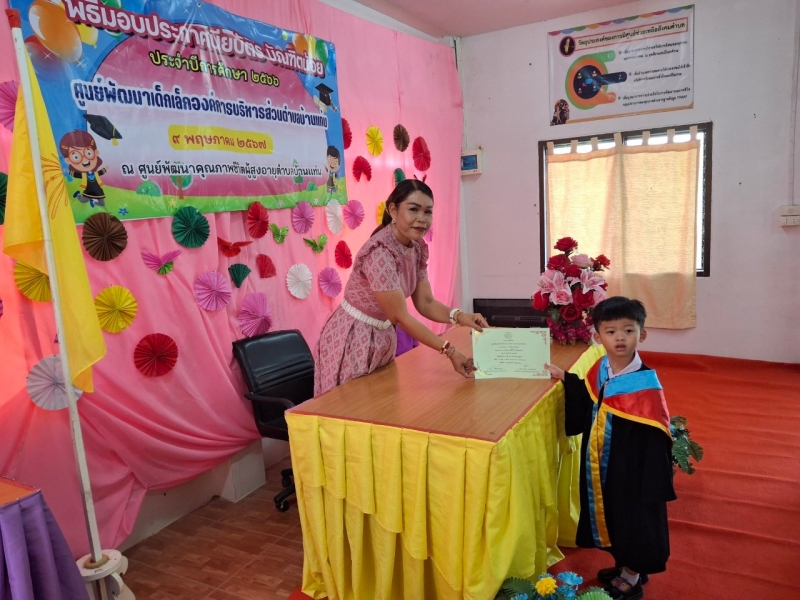 วันที่ 9 พฤษภาคม 2567 ณ ศูนย์พัฒนาเด็กเล็กองค์การบริหารส่วนตำบลบ้านแท่น นางลัดดาวัลย์ แก้วสุพรรณ์ นายกองค์การบริหารส่วนตำบลบ้านแท่น เป็นประธานในพิธีมอบประกาศนียบัตร เด็กปฐมวัยศูนย์พัฒนาเด็กองค์การบริหารส่วนตำบลบ้านแท่น